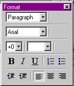 Under this is a set of toolbars, which also will change. Some of the toolbars that will appear are ones that are removeable from the top of the screen and can become floating palettes.