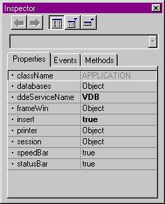 There are some interesting options with the inspector that have surfaced in dBASE (i.e., these were not available in Visual dBASE 5.x).
