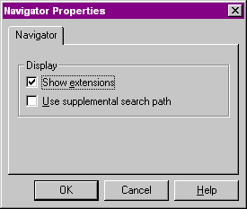 It is possible to make a couple of changes here. There are only two. These can be seen by making sure that the Navigator window has focus (click on it anywhere). In the dBASE menus is the "Properties" menu. Select this, and then select "Navigator Properties". You will see a dialog: