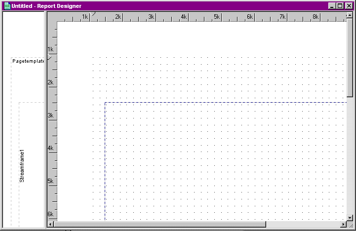 To start off, there are two panes to the window -- one on the left and one on the right. The one on the left is used to show the relationship of the report objects to each other, while the one on the right is used to actually design the report.