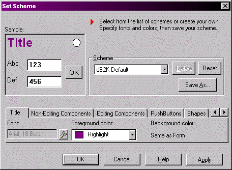 You can make changes to the current 'scheme', use a pre-defined scheme, or create your own.