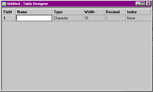 This is where you define fields, field types, field sizes, indexes (you can do them simply or by using the menus you can do more complex or primary indexes).