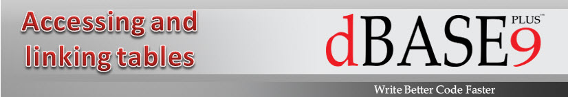 To link your forms and reports to the data in tables, dBASE Plus provides a set of data objects. In the designers, these objects are available on the Data Access page of the Component palette. These components make specialized database access functionality available to your dBASE Plus applications.