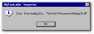 Under VdB 7.x, you can use the Form designer to link an icon property to a filename or to an icon resource from Resource.dll. If you try to link that property to an icon resource from another DLL, you will get an error message similar to this one: