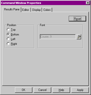 There are four tabs, the first one we'll discuss here. The others have to do with the editor, but making changes for the editor may also affect the command window (colors, fonts ...).