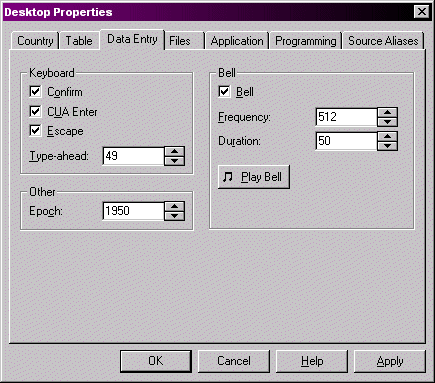 The 'Country' tab is aimed at settings that affect developers using dBASE and applications that will be used outside of the US.