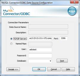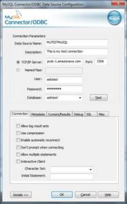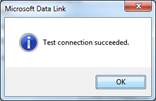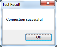 Click the Test button to ensure connection success. Click the OK button and then click the main Window’s OK button to exit that dialog. |