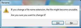 Once you leave the rename, a warning will be displayed stating changing the extension could have drastic affects. We want it to, so press the Yes button to continue |