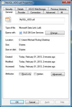 A universal data link (.udl) file is essentially a text file that contains the connection string for an OLE DB data source. [Microsoft/msdn] Creating a UDL connection is very easy in Windows, and the following is the step-by-step instructions for doing the process.