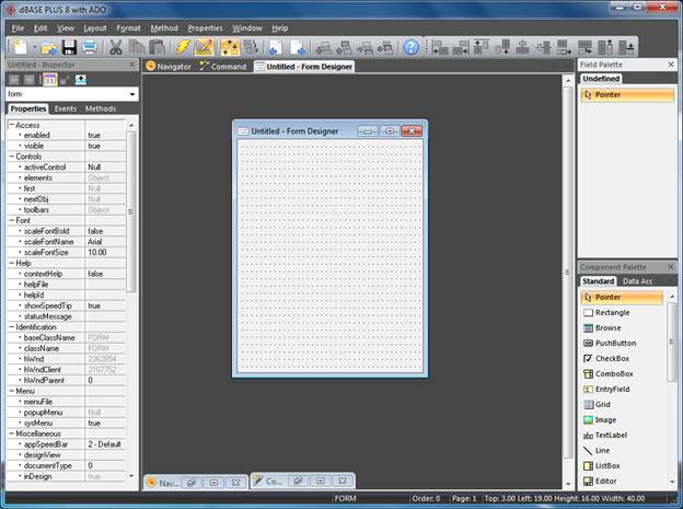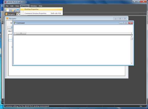 Open dBASE Plus and click on the Menu Properties|Deskotp Properties menu item