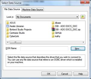 NOTE: If you are planning to build a connection string, you must start dBASE as administrator so that the proper rights to create database connections is enabled. |