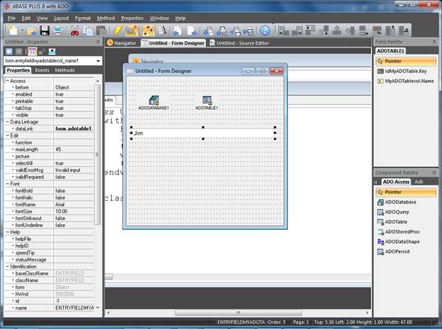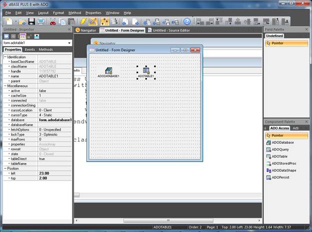 Create a new form, but do not use the Wizard. Now go to the ADO Access tab on the Component palette.